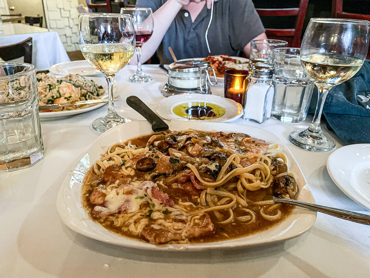 Seafood options, like seafood fra diablo and steamed mussels, nod to the restaurant’s versatility beyond red sauce standards, while specialties such as the pork chop bitsy and veal a la Barge lean into that rich, comforting Italian flavor profile that locals appreciate. A standout on dessert here is the bread pudding—a sweet finish that balances the savory menu well, crafted with clear devotion to both taste and texture.